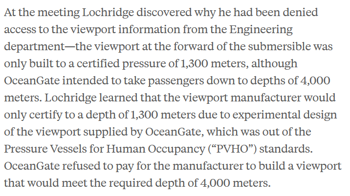 1. 기존 잠수정과는 다른 소재 / 설계를 함 2. 안전을 위해 테스트 장비 설치(전문가들이 참여) 3. 테스트 과정에서 위험 감지 4. 전문가들이 문제를 발견하고 경고 5. 테스트에서 성공했으니 그대로 사용해도 된다며 강행 6. 전문가들이 경고하고 떠남 7. 사건 발생 4,5번이 몇번 하면서 생긴 피로 파괴도 있긴한데 애초에 혁신이라며 위험의 객관적인 요소를 무시해서 잘못 만든 잠수정을 포기 안한 CEO가 문제였지 | 26.03.30 13:54 | | |