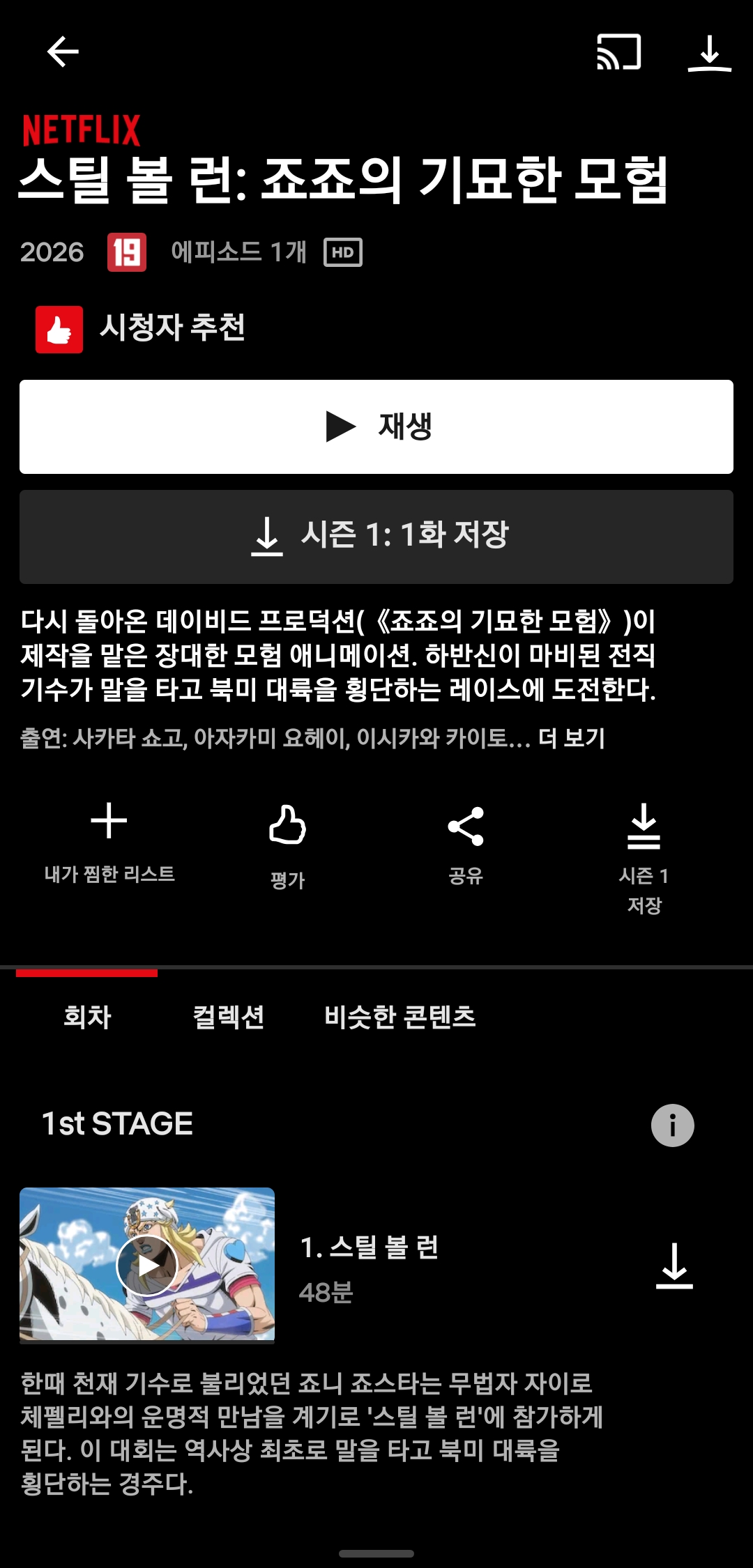 스틸볼런이 이거보다 스토리 더 길거 같은데1화처럼 1시간 한다고 치면 총 몇화가 될지 예상됨? 궁금하네. | 26.03.31 15:27 | | |