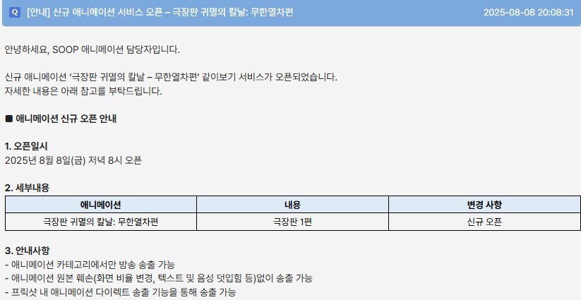 [정보] SOOP, 귀멸의 칼날 전 시즌 같이보기 공지 [7]