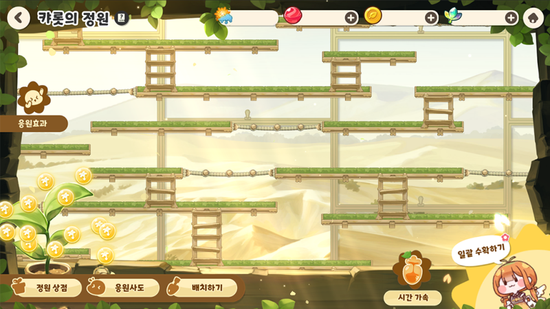 캬롯의 정원에 다양한 식물을 배치해 정원을 꾸며보세요!