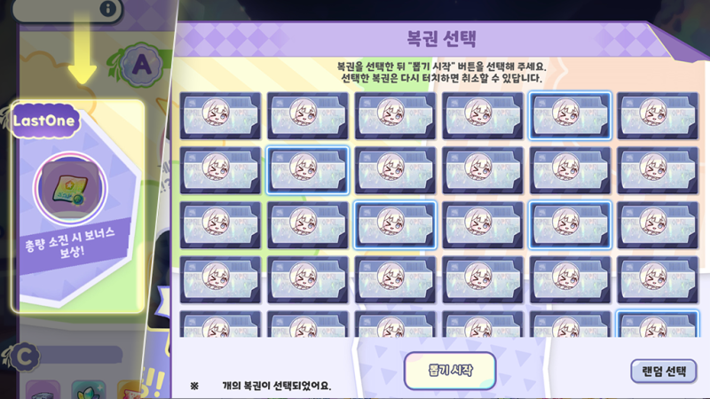 거기에 하나 더해서 뽑기판의 모든 복권을 열게 되면 라스트원 보상을 획득할 수 있답니다.