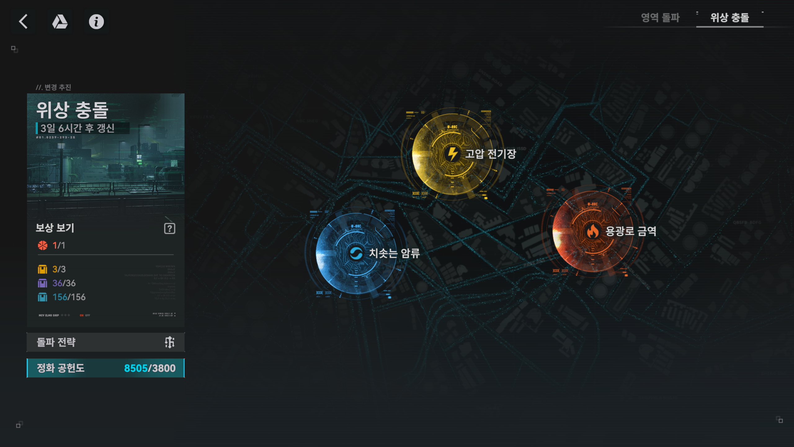 위상 충돌은 기존의 영역 돌파와 마찬가지로 메인 화면에서 한정 오픈을 통해 진입할 수 있습니다.