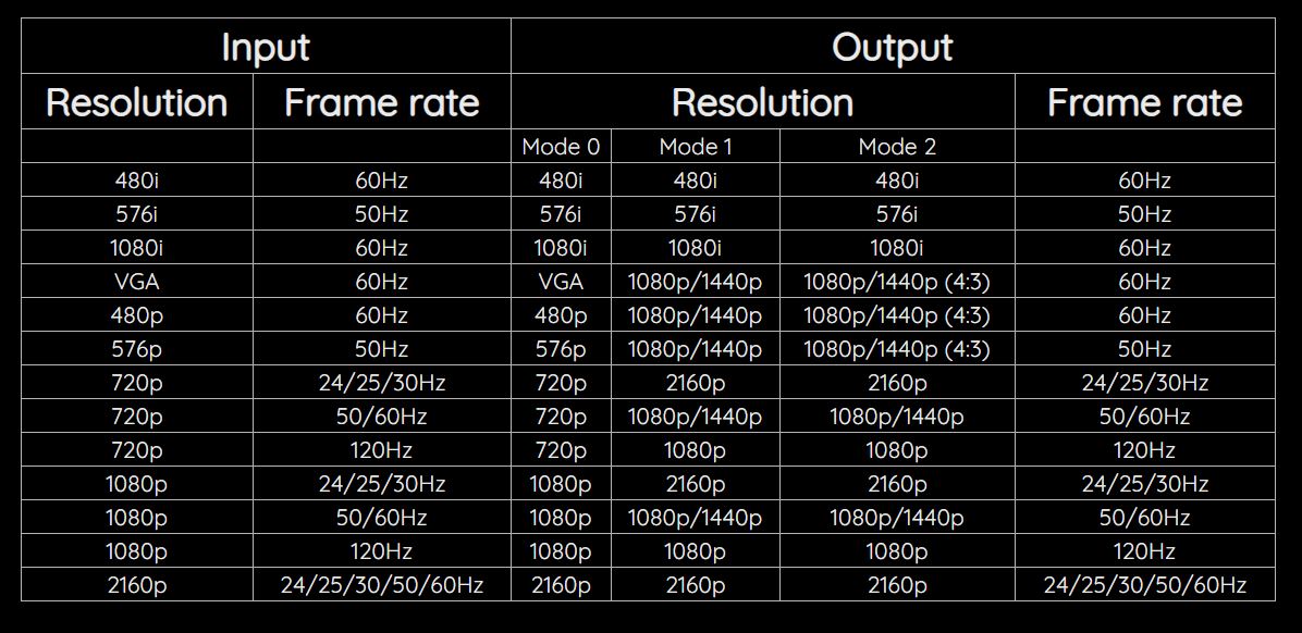mclassic 스케일링 차트인데요 스위치 출력 해상도가 인풋에 맞아야 작동을 할거라 강제로 출력 해상도를 조정해야 활성화가 될 가능성이 있어보입니다 4k 입력출력이 된다고 쓰여는 있지만 솔직히 mclassic 수준에서는 4k를 더 나은 4k 화질로 개선 못할 것 같거든요... 그렇담 1080p로 해상도를 내려서 엠클래식을 활성화 시켜야 한다는건데 그런식으로 엠클래식을 쓰는게 나을지 스위치2에 내장된 기본 업스케일러를 쓰는게 나을지는 품질 비교를 해봐야 되지 싶네요