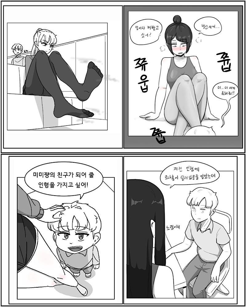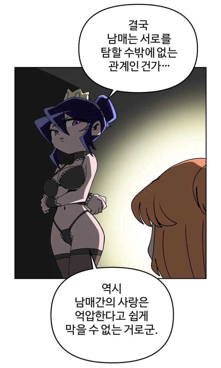말풍선 무시하고 그림과 구도에만 주목하면 영락없이 사귀는 남녀끼리 토닥거리는 장면~~