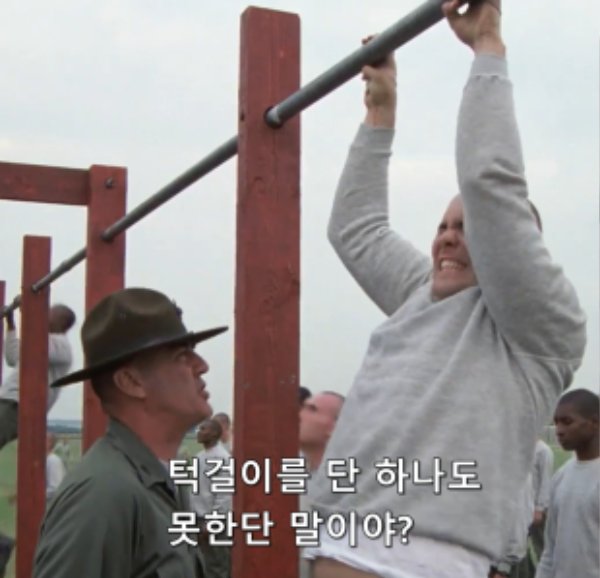 그냥 구글링 하면서 찾은건데용. 윗장면은 미해병들이 종종하는 체력단련법으로 일명 '탄약통 들어올리기' 아래는 미해병 기준으로 턱걸이 횟수 측정기준으로 셋팅 자세에서 팔꿈치는 완전히 펴져있어야 하고, 탑에서는 목젖이나 쇄골이 철봉에 닿아야 1회로 간주된다라는 것이죠. | 18.10.08 23:51 | | |