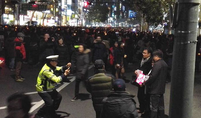 그건 아니야. 시위는 결국 권위에 대한 저항이고, 폭력이 필요해지는 시점도 분명히 옴. 우리도 거기서 해결 안났으면 빠루랑 화염병 들고 달렸어. 촛불시위는 야만적인 폭력 안 쓰고 끝나서 선진시위인 게 아니라, 폭력이 필요해지는 시점 전에 끝을 낸 시위임