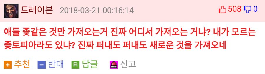 요즘 드레이븐 얼굴 롤보다 여기서 더 많이 보는 거 같아