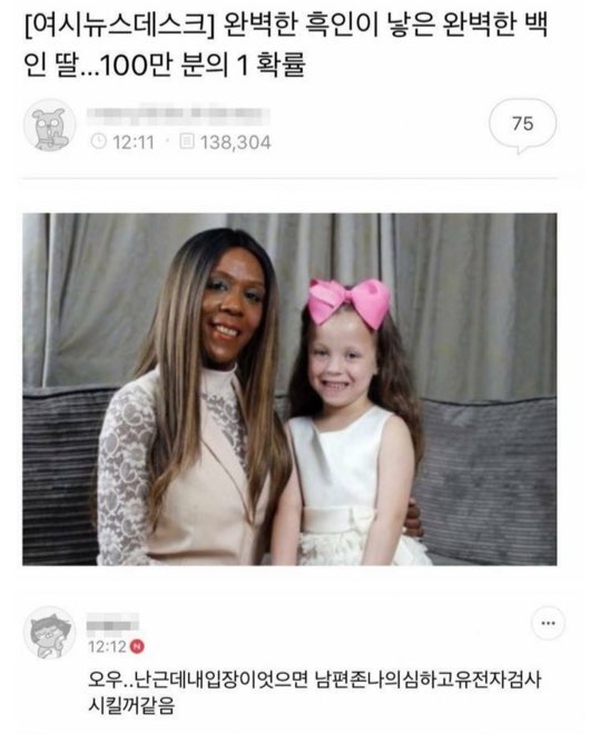 ㅇㅇ 게다가 저 불륜사실로 인해 가정불화가 잦거나 했다면 저 흑인도 자라면서 눈치챘을텐데, 그럴만한 부부싸움도 딱히 없었나보네 | 19.03.02 13:07 | | |