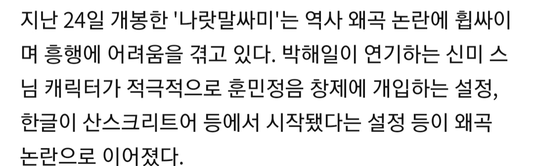 https://n.news.naver.com/entertain/article/241/0002942785 인터뷰가 아닌 작품내용 자체가 '산스크리트어에 능통한 불교인사가 한글창제주도' 임 | 19.12.27 19:33 | | |