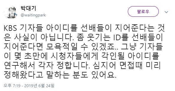 마치 KBS가 경직된 사내문화라는 이미지를 심어줄수 있으니까 | 20.02.06 11:57 | | |