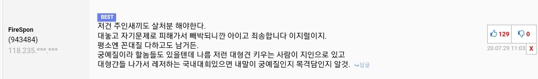 ㅇㅇ..다른 개 물어죽이고 저러는 거 | 20.07.31 12:31 | | |
