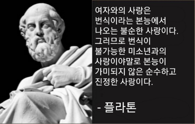 실제로 고대 그리스에서는 여성을 같은 인간으로서 질이 떨어지는 그런식으로 치부하는 경향이 강해서 고등한 남성들끼리 사랑을 하는 것이 더욱 고차원적인 것이라는 식의 인식도 존재했다고 함. | 20.08.01 01:34 | | |