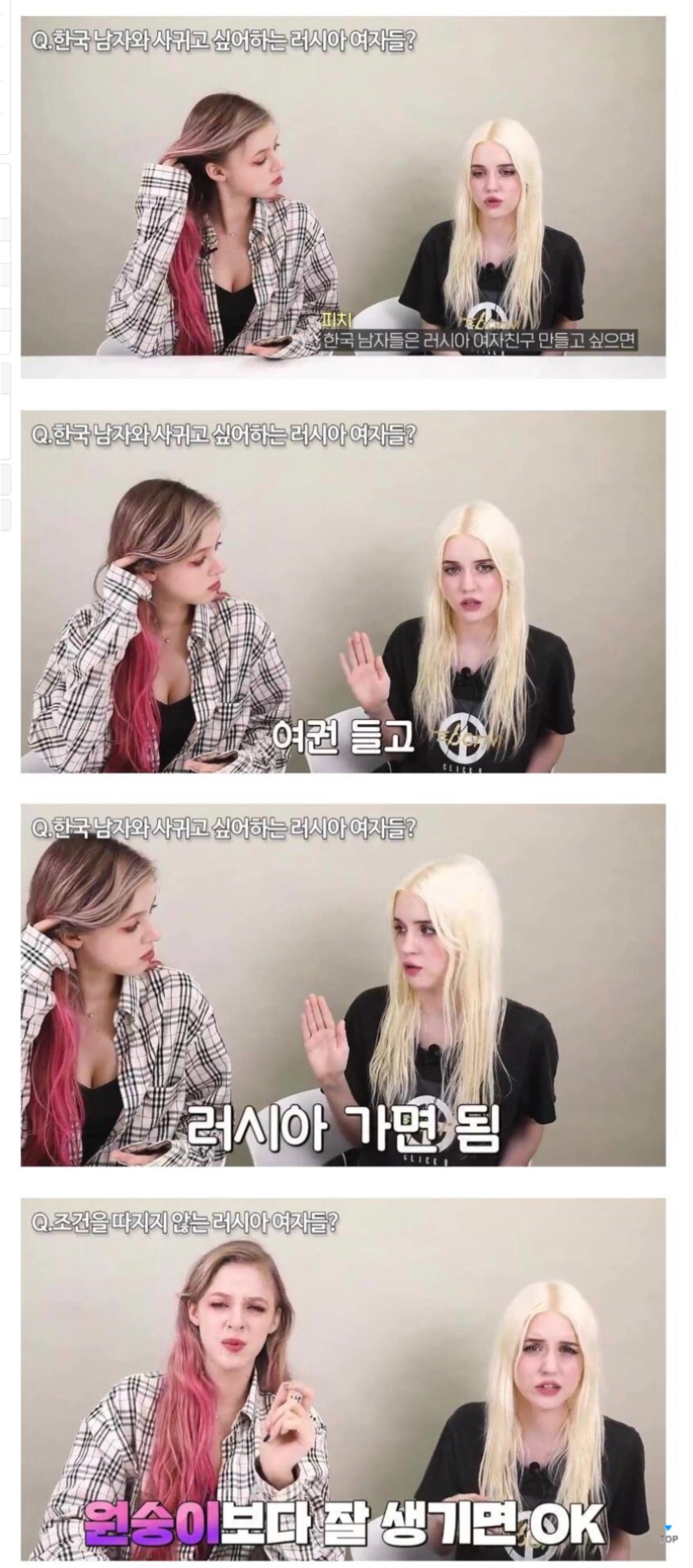 그냥 러시아 현지인의 미녀상과 우리들 눈에 보이는 미녀상이 얼마나 다른가 또 우리눈에 차는 미녀비율은 대충 얼마나 되나 이정도 알아보려고 하는 프로인데 핀트 못잡고 이악물지마. 저 여자가 진짜 예시의 여자들 못생겼다고 까내리려고 작정한 의도로 보임? | 20.12.03 16:58 | | |