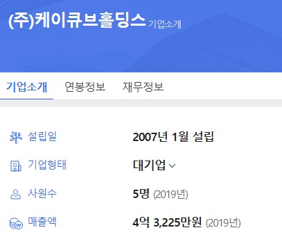 케이큐브홀딩스는 2007년, 김범수 의장이 세운 비상장 투자회사이자 카카오의 주주로 김 의장이 지분 100%를 보유한 개인회사다. 비상장 투자 및 경영 컨설팅사로 본사는 서울 강남구 테헤란로에 위치했다. 2019년 말 기준으로 직원 수는 5명이며, 그해 급여 지출액은 14억원이다. 케이큐브홀딩스는 카카오 지분 11.26%와 카카오게임즈 지분 1.01%을 가졌다. 김 의장은 카카오 지분 13.74%와 케이큐브홀딩스 지분 100%를 갖고 있어, 사실상 카카오 지분 24.95%를 가진 것으로 여겨진다. 아울러 지난달에는 티포인베스트를 올해 3월1일자로 흡수합병하기로 공시했다. 티포인베스트 역시 김 의장이 지분 100%를 가졌던 회사다. 또한 지난해 5월 ‘대규모 기업 집단 현황 공시’에 따르면 이 회사의 대표는 김 의장의 동생인 김화영씨다. 김 의장의 아내인 형미선씨도 이 회사의 기타상무이사에 이름을 올라와 있으며 홈페이지에는 회사 로고와 결산 및 공고 자료, 회사 위치·대표 전화번호·사업자등록번호 등이 기재돼있다. | 21.01.28 20:34 | | |