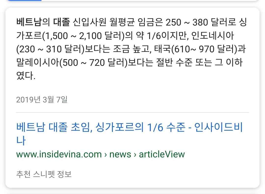 근데 베트남애들은 대부분 저축개념없고(태국도) 진짜 돈 많이씀 버는족족. 특히 저렇게 한국돈으로 버는애들은 저 평균임금같은거의미없이 우리보다 더 팡팡쓰는경우가 대부분임 | 21.03.20 17:36 | | |