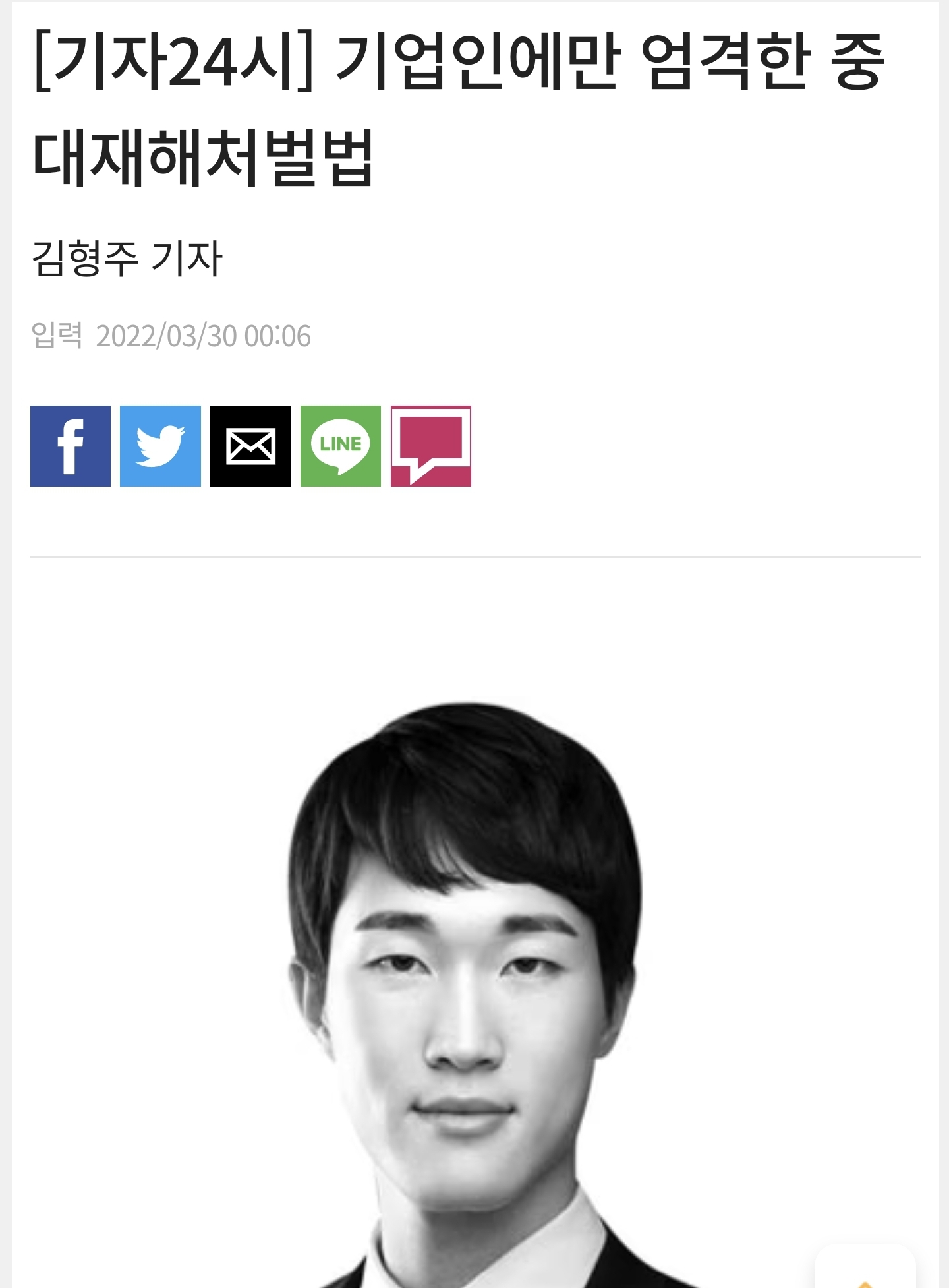 기레기는 과로사, 사고사 할 일이 없어서 중대재해처벌법 적용 안해도 되나보다. | 22.03.30 10:38 | | |