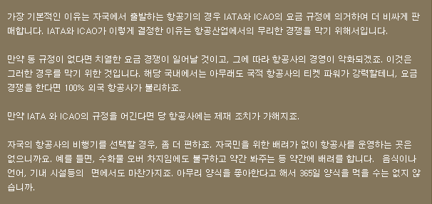 항공사들끼리의 무리한 가격 경쟁및 단합을 막기위해서와 항공 스케줄을 짜기 위해서 만들었다네 | 23.03.08 14:46 | | |