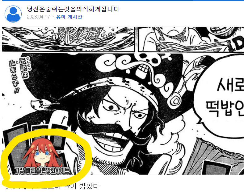 https://bbs.ruliweb.com/community/board/300143/read/61137607 님 최신글 보니까 원피스 불법 번역본 마나토끼 당당하게 올리셨던데 돈 받고 홍보하시는건가요? | 23.04.19 16:53 | | |