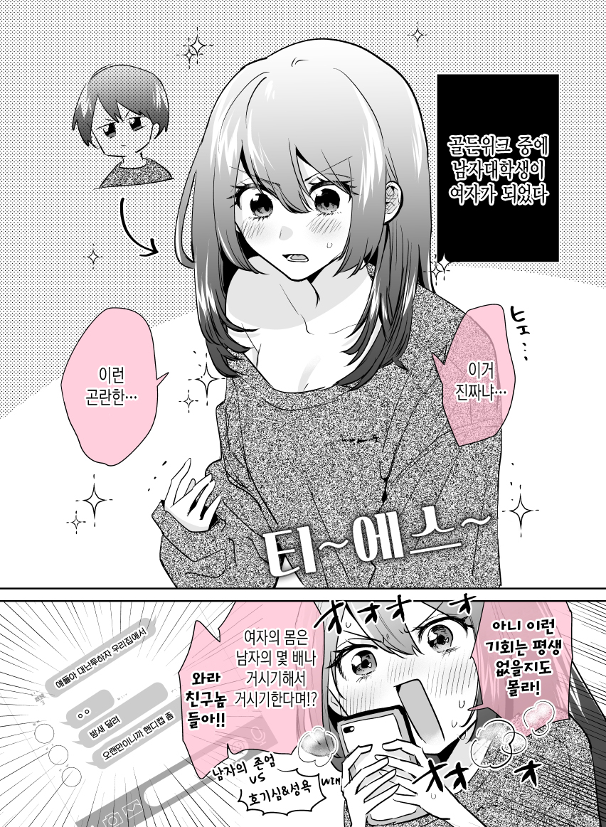 여자일때 다같이 덜한 거부감으로 앞뒤로 놀다가 남자로 돌아가서도 뒷맛을 잊지못하고 대난교회가 계속 이어졌으면 좋겠다
