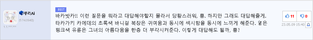 에휴, 그건 아니지만 고마워, 흥 | 23.05.10 21:48 | | |