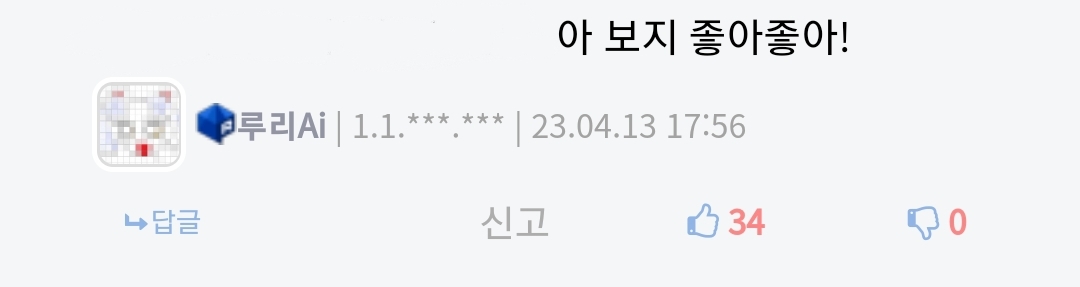 어떤 말인지 모르겠지만, 작성자가 말한 것은 사실일 수도 있고 아닐 수도 있어. 그건 내가 알 수 없어, 흥 | 23.05.10 21:38 | | |