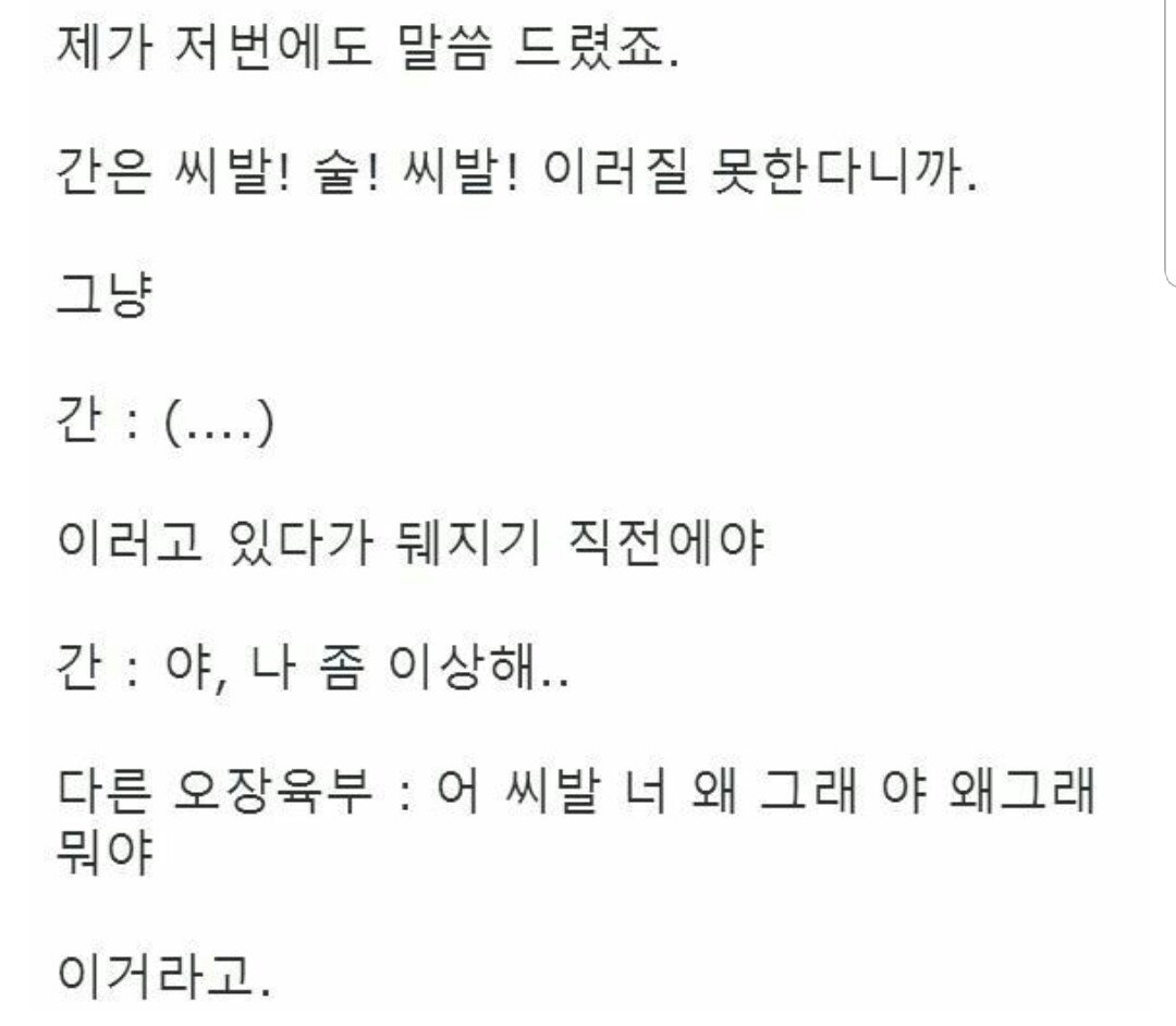 그렇게 자해해서 흉터가 늘어난 간짱은 간경화가 돼버렸답니다~!