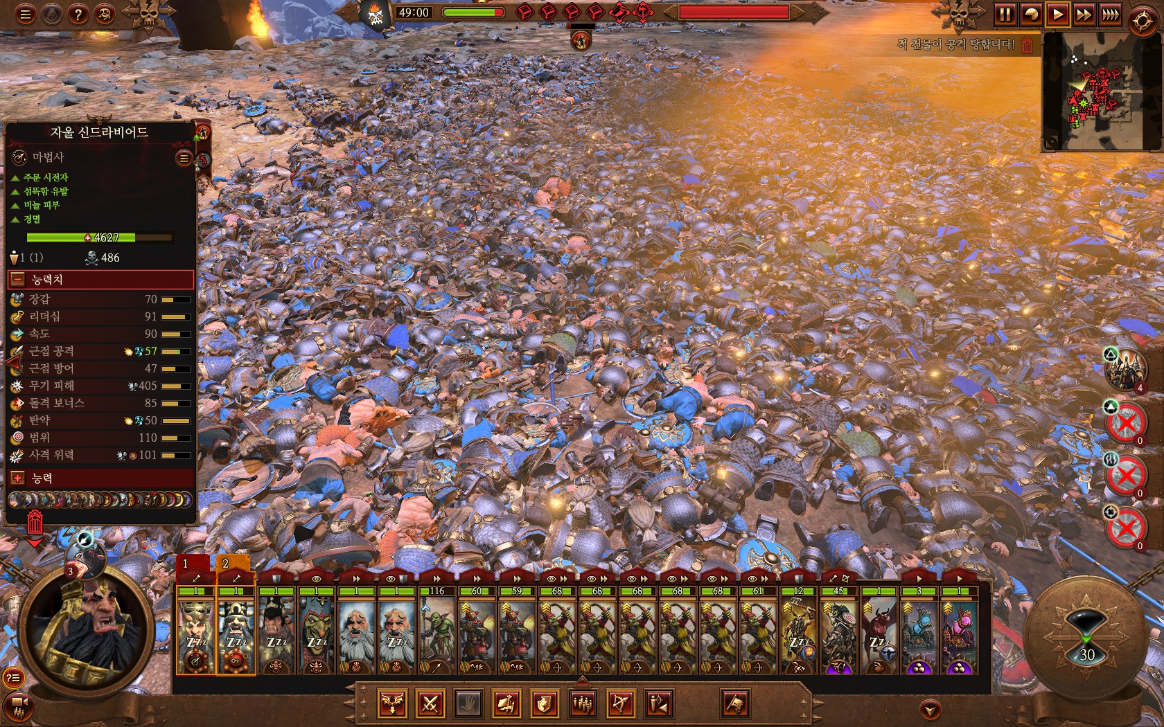 스샷은 가장 최근에 추가된 카오스 드워프라는 OP 종족임 근데 전투는 가장 쎄다고 해도 이견 듣기 힘든데 내정이 쓸데없이 복잡해서 초보가 하기는 좋지 않음 초보는 게임 들어가면 딱 추천마크 있는 하이엘프(에아테인), 캐세이(묘영), 제국(칼프란츠)로 시작하는 게 좋음
