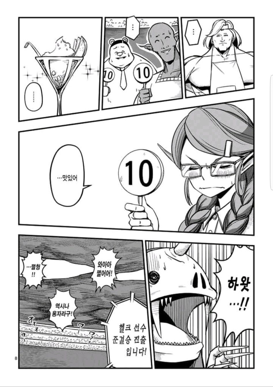 어떻게든 떨어뜨리려고, '저런 근육 떡대 용사가 요리나 섬세한 가정적 일을 제대로 할 리 없자!!' 라는 편견으로 추가한 종목 중 하나인 요리대결 ㅋㅋㅋㅋㅋㅋㅋㅋ