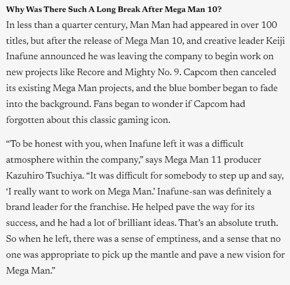 츠치야 카즈히로 : 이나후네 퇴사한 뒤로는 록맨 후속작 만들고 싶어도