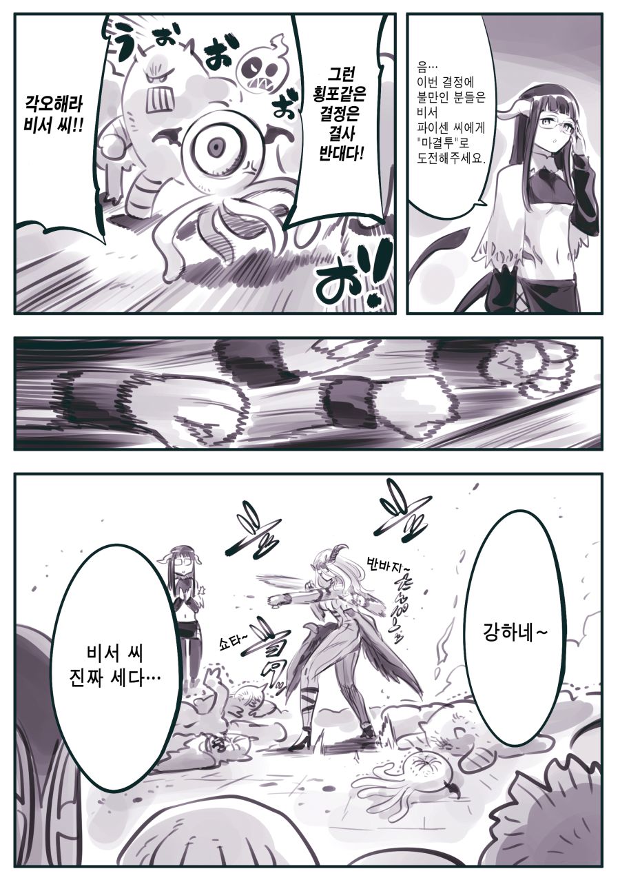 1. 비서가 마왕군 전투력으로는 최강인걸로 암. 2. 저 남자는 용사는 아니고 예전에 연민경이 '돌파하는자'라고 부른 만화가 있음. 3. 저 남자랑 의태괴물은 이미 팬박스에서 진도 뺀 사이임.