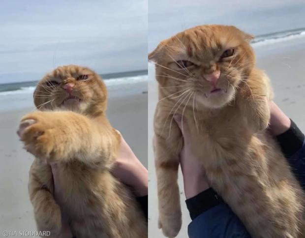 바다 처음 맛 본 고양이