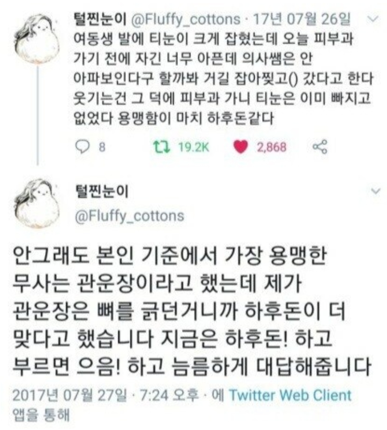 병/신이지. 의사도 어이 없어했을거고 | 23.09.27 16:42 | | |
