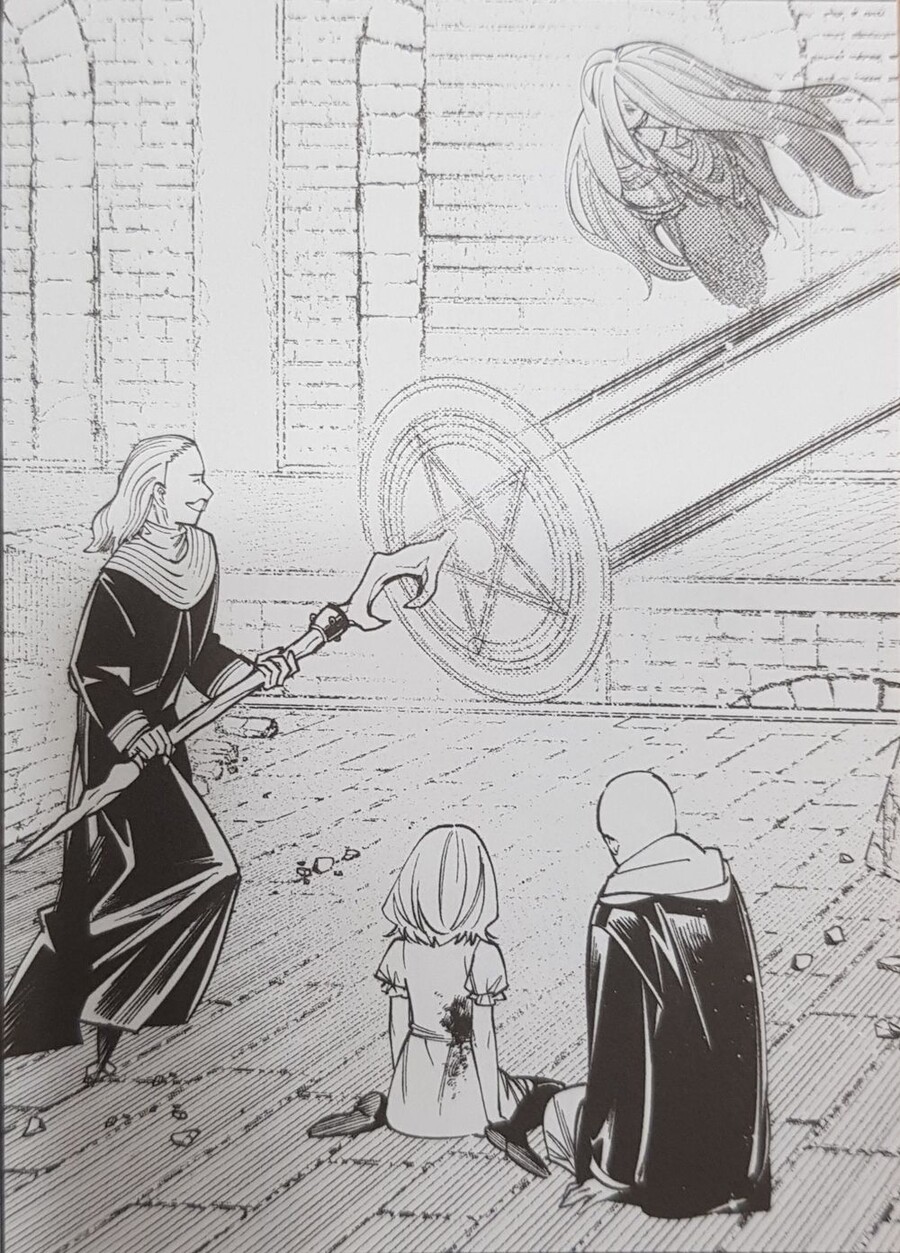 최대한 힘낸 긴박한 장면 액션 작화가 이런... 이런 작화로 그리는데도, 그런대로 재미지던 만화가... 애니팀에 의해 미친 액션을 갖추게 되면서 재미가 몇배로 업그레이드!! 귀멸작가도 그런데... 프리렌작가도 애니회사에 매일삼배 절해야한다.