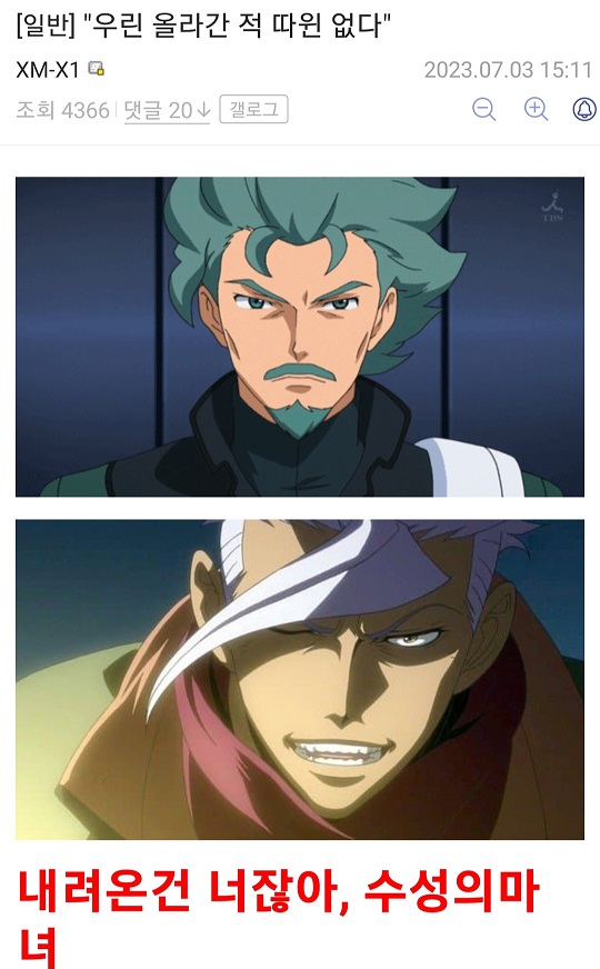 사이다 수습같은 건 있을 수 없음. 1년전쟁조차도 엔딩에서 아바오아쿠 함락되고 끝났을 뿐, 이후 몇년 사이에 줄줄이 지온 잔당, 티탄즈, 샤아 전쟁 줄줄이 터젔음. | 23.11.26 11:38 | | |