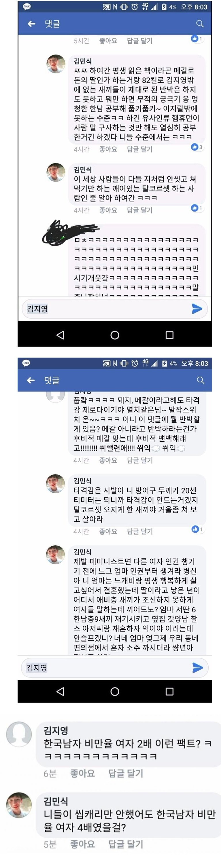 나도 보면서 욕이 너무 써있으니까 그냥 불쾌해지더라. 진짜 피력 좋은 사람은 펙트만으로 지적하는데 저건 그냥 욕지거리 하는 거밖에 안돼는데, 페미가 오죽하면 저러겟냐 할 수도 있겠지만, 아닌 건 아닌 거지 저건 그냥 법적인 제재에 걸리지만 안을 뿐 혐오는 똑같은건데 말이다. | 23.11.26 19:20 | | |