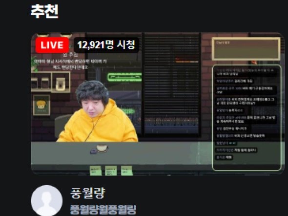 왠만한 스트리머 닉 다 선점 당했닫.랔ㅋㅋㅋㅋ 그래서 공식는 [풍월량] 이런싣으로 대괄호 쳐준데