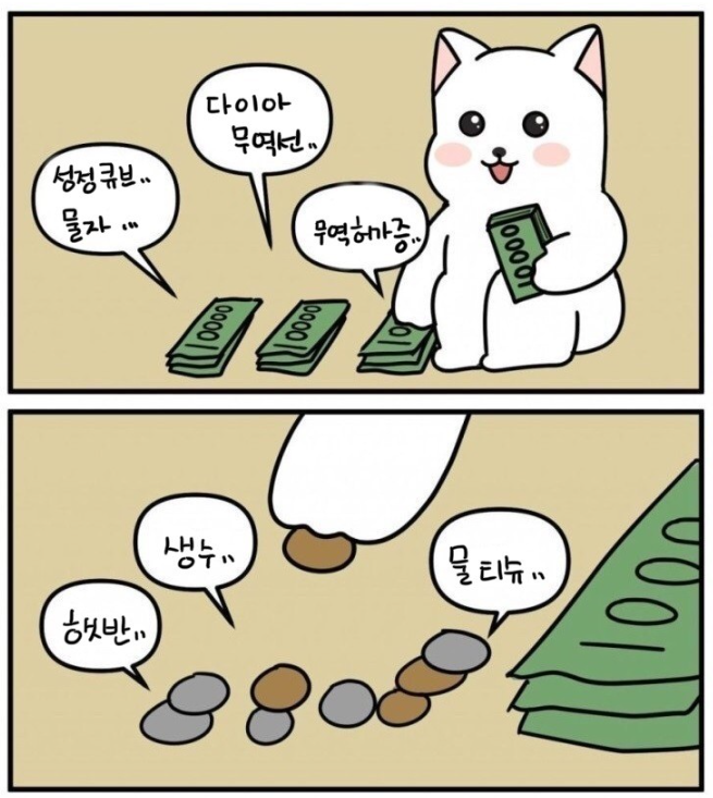 근데 나도 매달 대체 돈이 어디로 빠져나가는걸까 궁금해서 10년전부터 가계부 틈틈히 써오긴 했는데 결국 원인은 언제나 나 자신이더라.. | 24.01.25 10:10 | | |