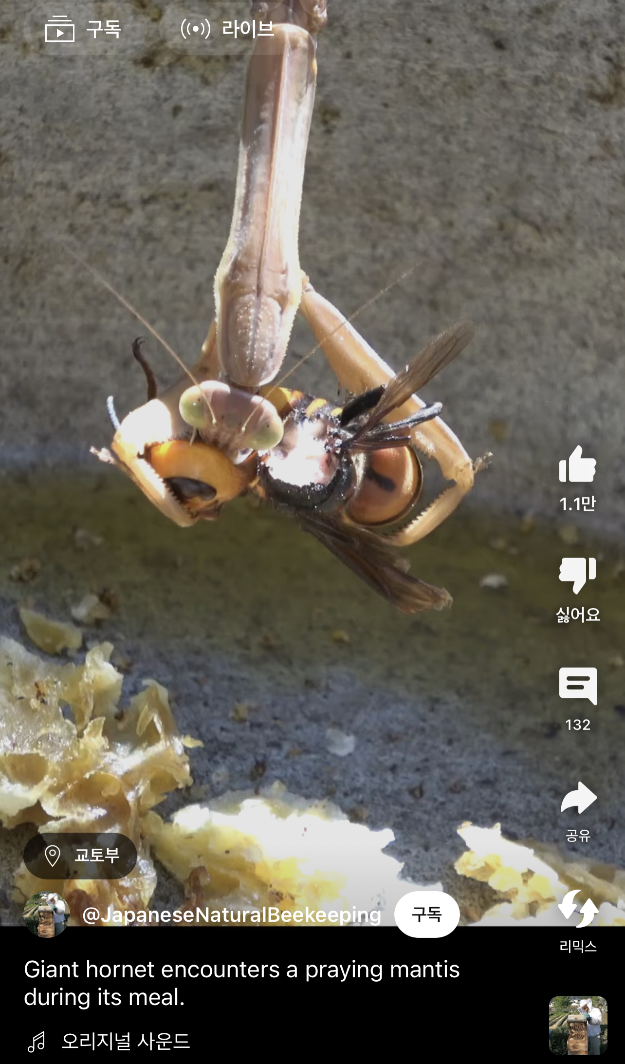 내가 어제 본게 이건데 장수말벌한테 질줄 알았는데 저거 절반 처먹은것 봐.. ㄷㄷ