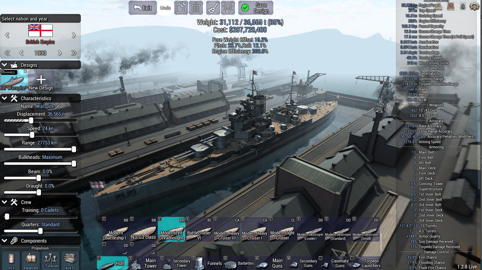 내가 만든 이상적인 전함이랑 싸움 붙이려고 나도 몬타나, 아이오와, 노스 캐롤라이나, 라이온, 뱅가드, 넬슨, 후드, 퀸 엘리자베스 등 잔뜩 설계했었는데 패치하면서 다 날아갔지. ㅠㅠ | 24.01.27 22:36 | | |