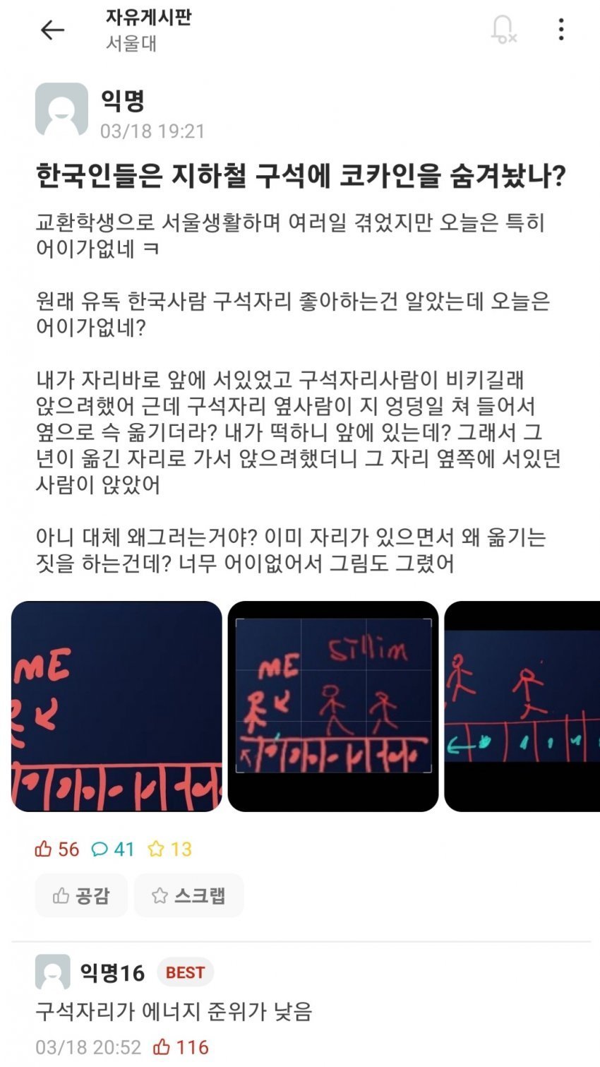 남자가 먼저 저자리에 앉았는데 여자가 내 옆에 앉으면 기분 좋음 | 24.01.31 14:25 | | |