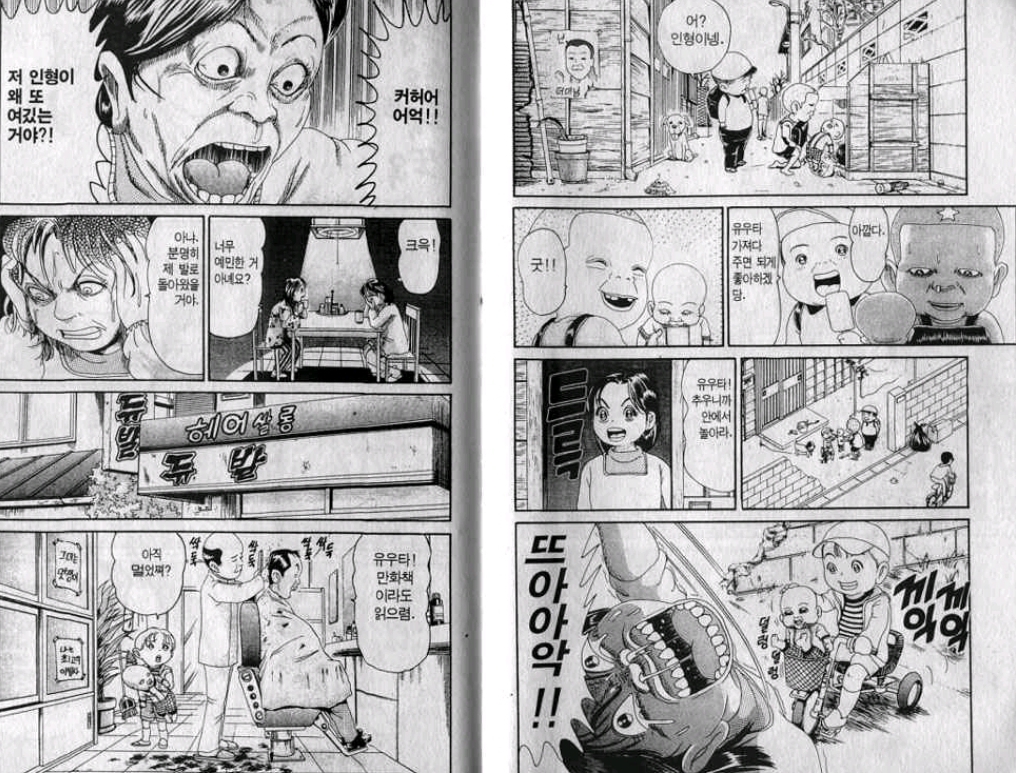 인형 괴담의 클리셰를 그대로 따라가다 전기 안마기가 붙어서 달달달 거리면서 걸어다닌 다던지 유우타가 먹인 마요네즈가 들어있는줄 모르고 인형을 눌렀다가 토한다던지 하다 아예 땅에 묻어버렸는데 모종삽 부분 밟는 바람에 거기에 걸려서 무덤 뚫고 코테츠 엄마한테 튀어오르기도 함. ㅋㅋ | 24.02.01 14:07 | | |