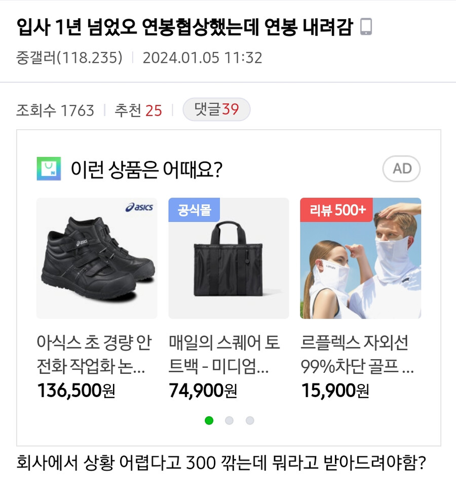 1년차 연봉 깍아야할 정도로 개판된거 아닐까.. | 24.02.13 10:00 | | |