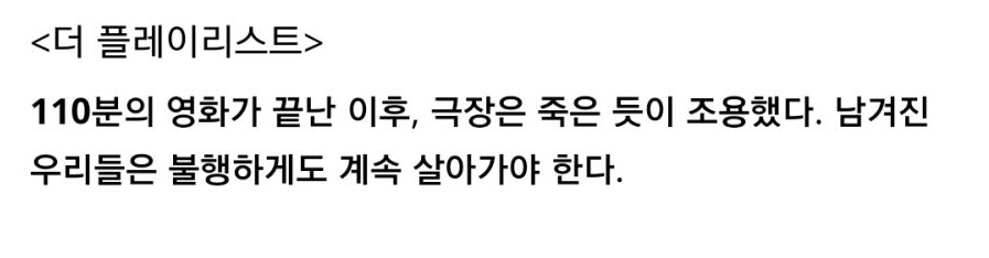"선택받은 고양이는 죽었다. 남겨진 우리는 불행히도 계속 살아가야 한다." 2000년도 이후 배출한 영화평 중 단언컨데 최고의 한줄평. | 24.02.16 16:01 | | |