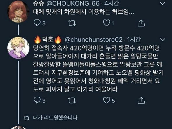 ㅋㅋㅋ 본인 의견은 맞고 반박하는 놈들은 전부 무지렁이다 정도의 사고 방식이구만
