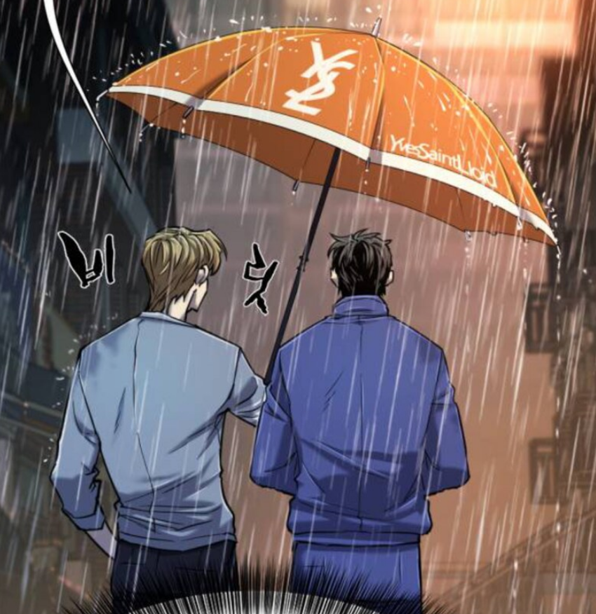 아니 니 어깨 다 젖잖아 우산 친구한테만 몰아주지 말고 제대로 쓰라고 ㅋㅋㅋ