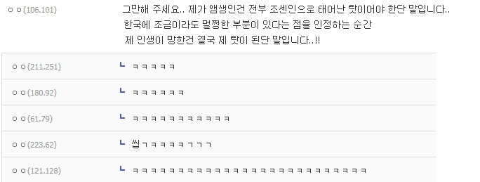 유게 렉카 이야기네 그놈들도 국까 이야기나 나라 망했으면 하는 글들만 주구장창 올리니