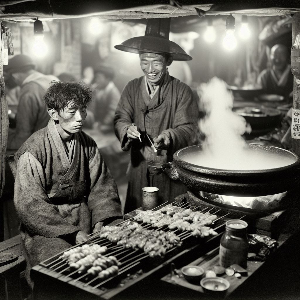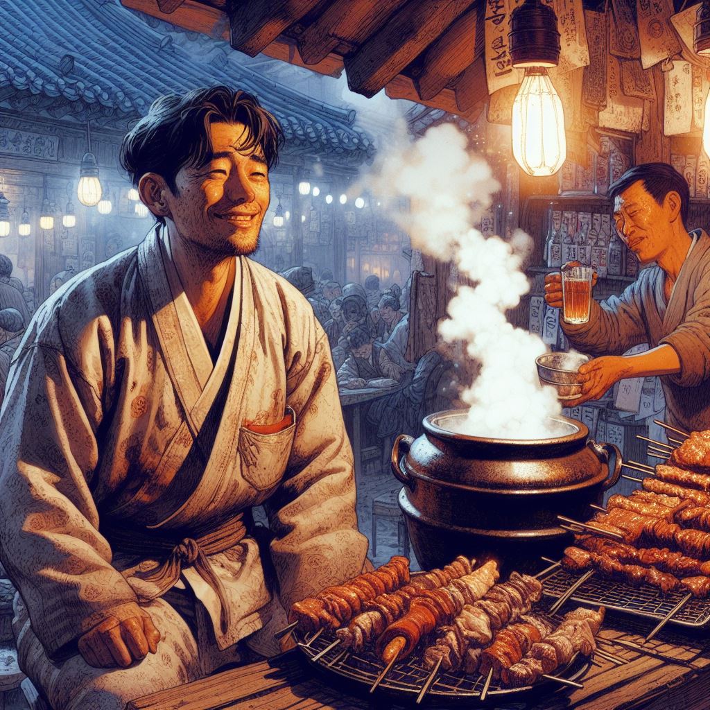 추어탕을 끓이는 솥뚜껑을 열 적마다 뭉게뭉게 떠오르는 흰김 석쇠에서 뻐지짓뻐지짓 구워지는 너비아니구이며 제육이며 간이며 콩팥이며 북어며 빈대떡……