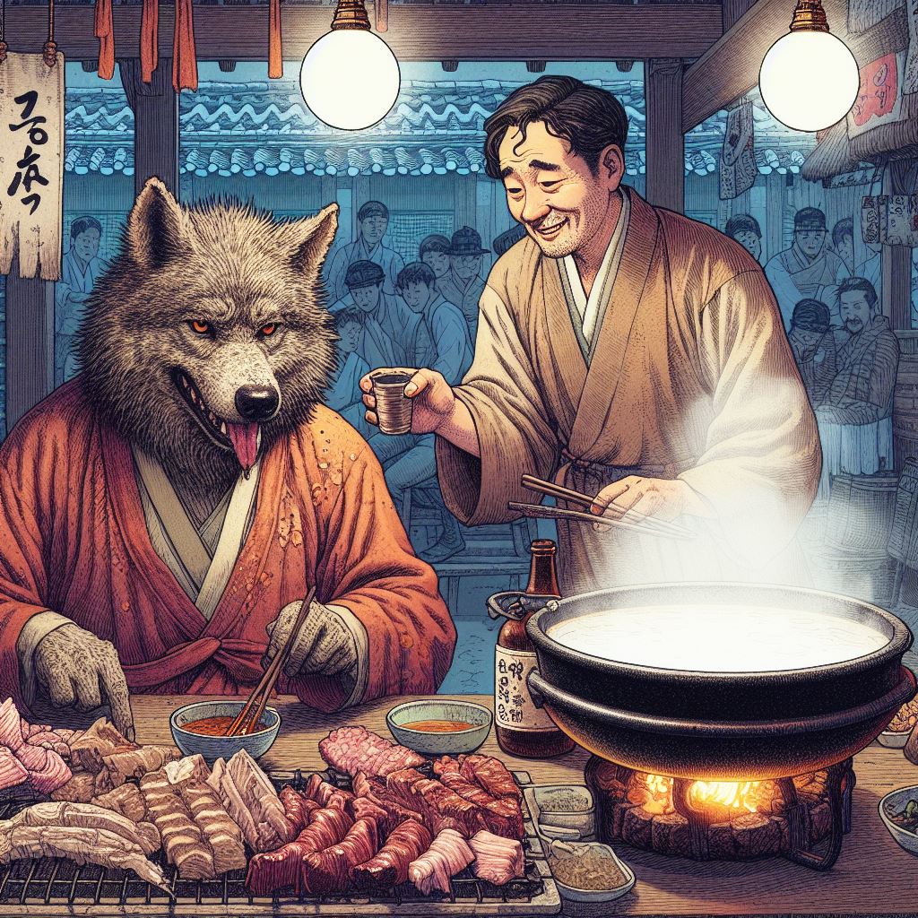 셋째 그릇을 받아 들었을 제 데우던 막걸리 곱배기 두 잔이 더웠다.