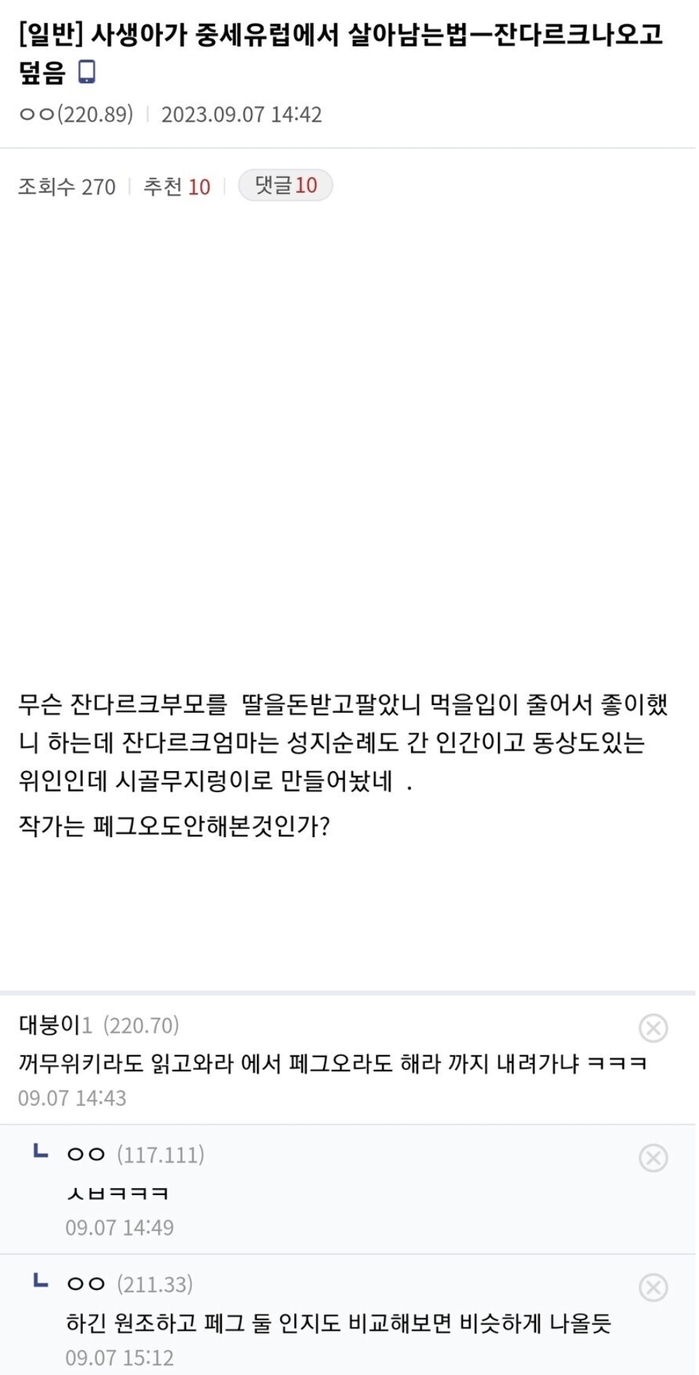 하고 막상 보면 인터넷에서 나오는 얘깃거리는 논문 대차검증까지 갈 필요조차 없는 이야기들만 수두룩빽빽함 ㅋㅋㅋ | 24.04.02 22:26 | | |