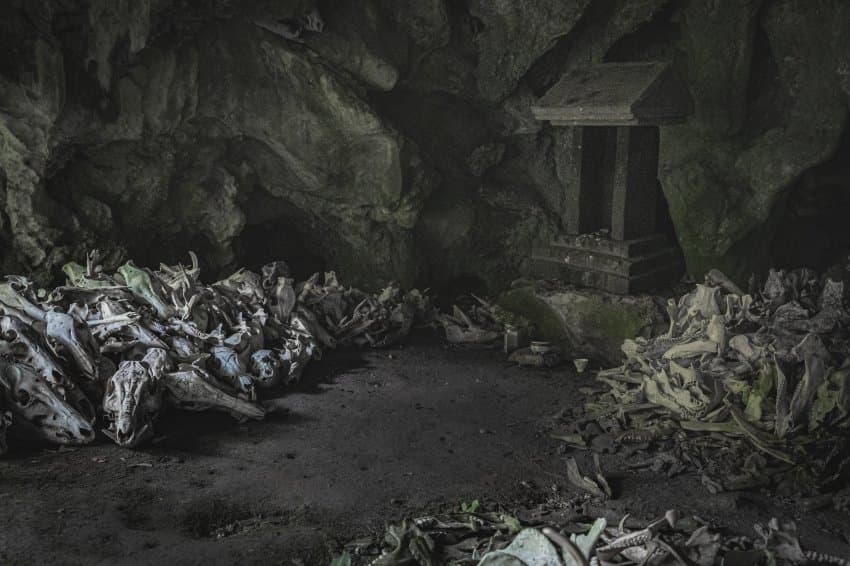 모 현, 산속, 절벽을 수십 미터 올라간 곳에 고즈넉하게 존재하는 이 동굴.안에는 멧돼지 뼈가 대량으로 쌓여 있어 일본 유일의 특이성을 한껏 느낄 수 있다. 이들 뼈는 모두 사냥꾼에 의해 봉납되어 있어 안전 사냥과 풍렵 기원이 목적인 것 같다. 레이와라고 쓰여진 뼈도 있으므로 지금도 여전히 그 수는 증가하고 있군요…대단하다… (파파고번역) | 24.04.07 11:52 | | |